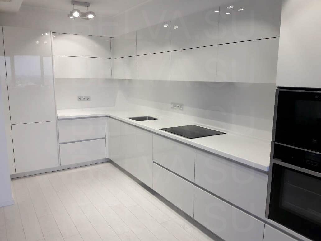 Абсолютная чистота линий и сияние белого глянца делают эту кухню воплощением современного минимализма. Гладкие фасады без ручек создают ощущение лёгкости и простора, отражая свет и визуально расширяя помещение. Белоснежная столешница плавно переходит в фартук, формируя единую геометрию и подчёркивая строгость форм. Встроенная техника интегрирована максимально аккуратно, сохраняя чистоту дизайна и удобство использования. Функциональная планировка обеспечивает комфорт при готовке и организации хранения. Отсутствие лишних деталей делает акцент на качестве материалов и идеальной сборке. Эта кухня подойдёт тем, кто ценит эстетику чистоты, света и порядка. Идеальное решение для современных интерьеров, где каждая деталь подчинена гармонии и лаконичности