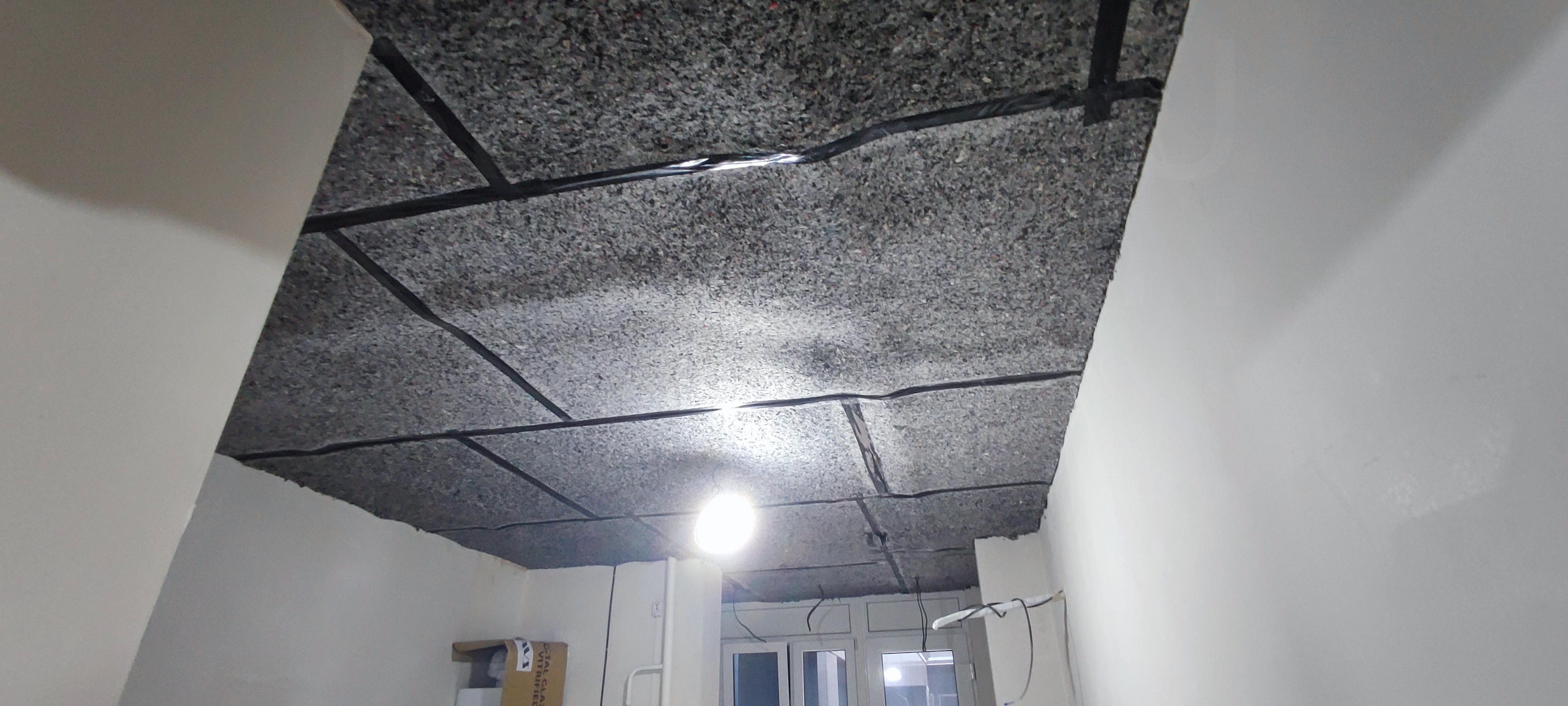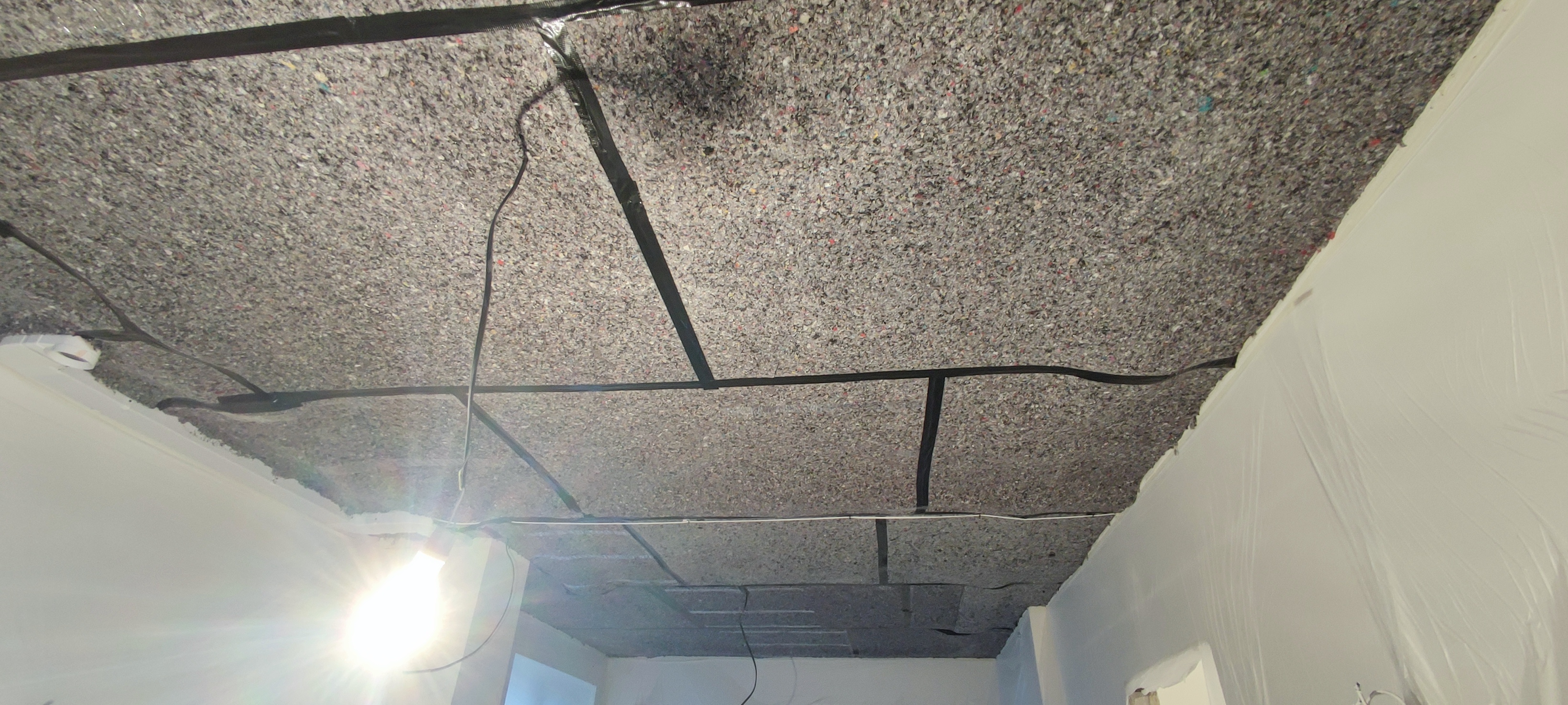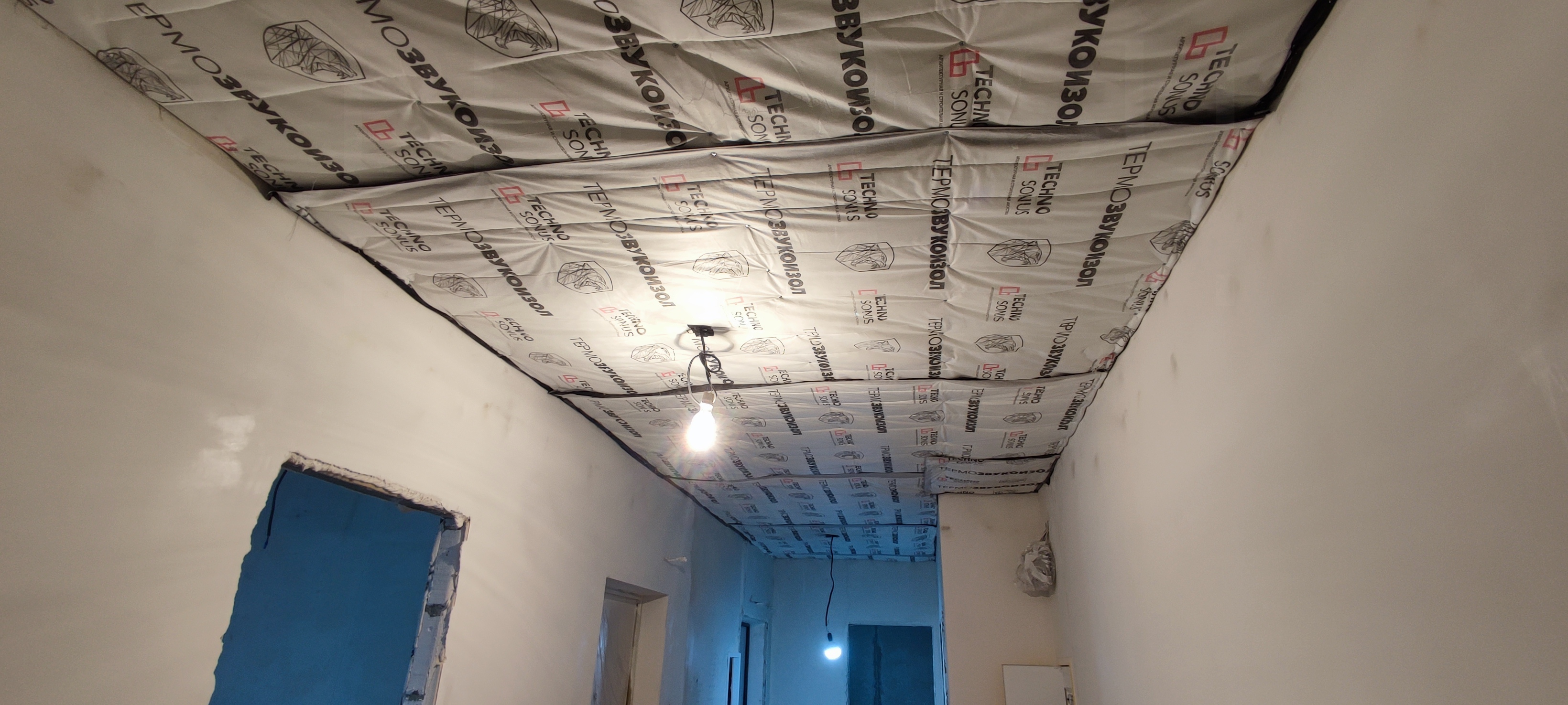 Мы сделали максимально усиленную систему звукоизоляции потолка именно в этой зоне: