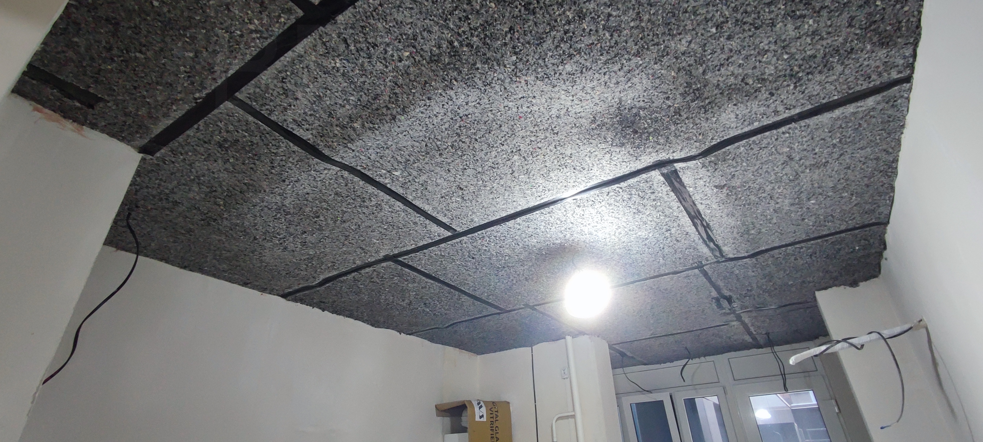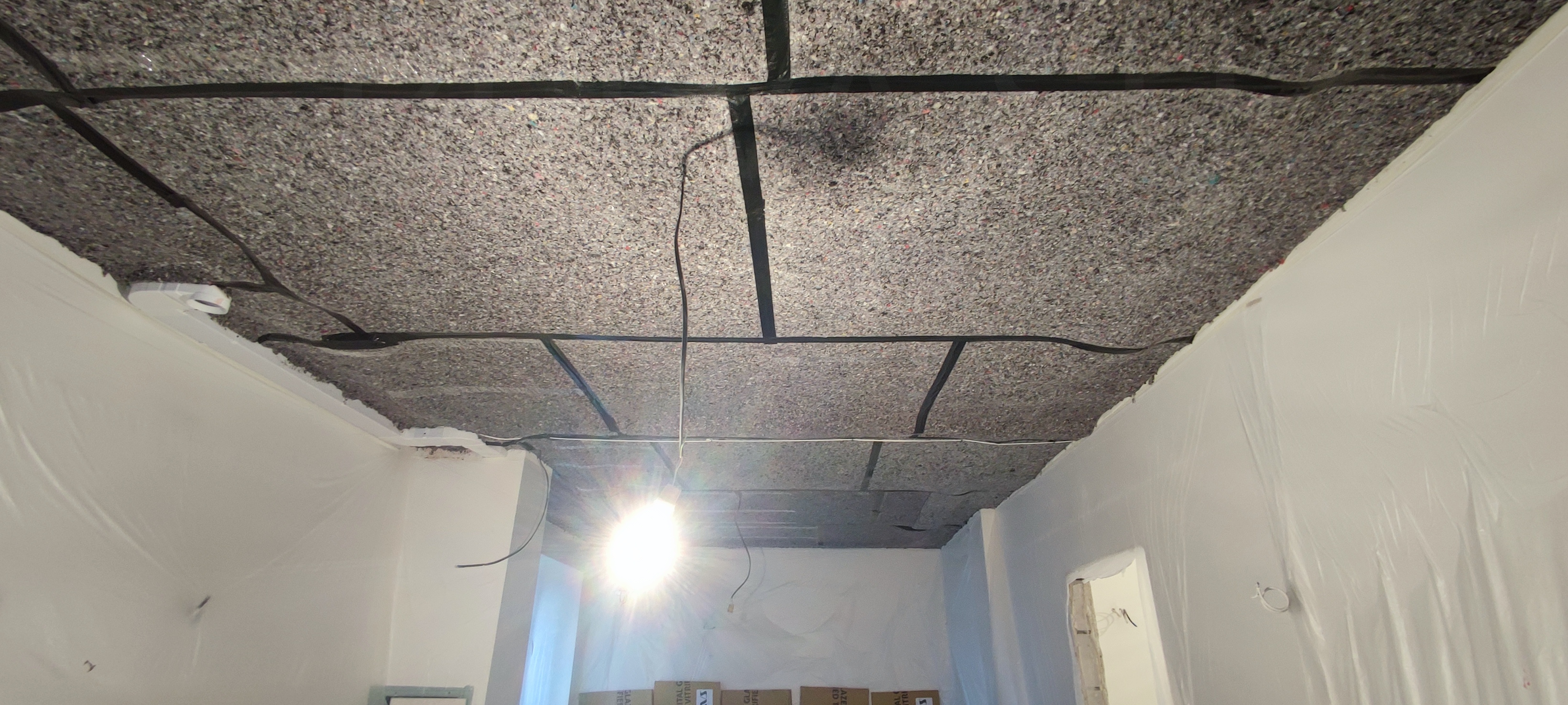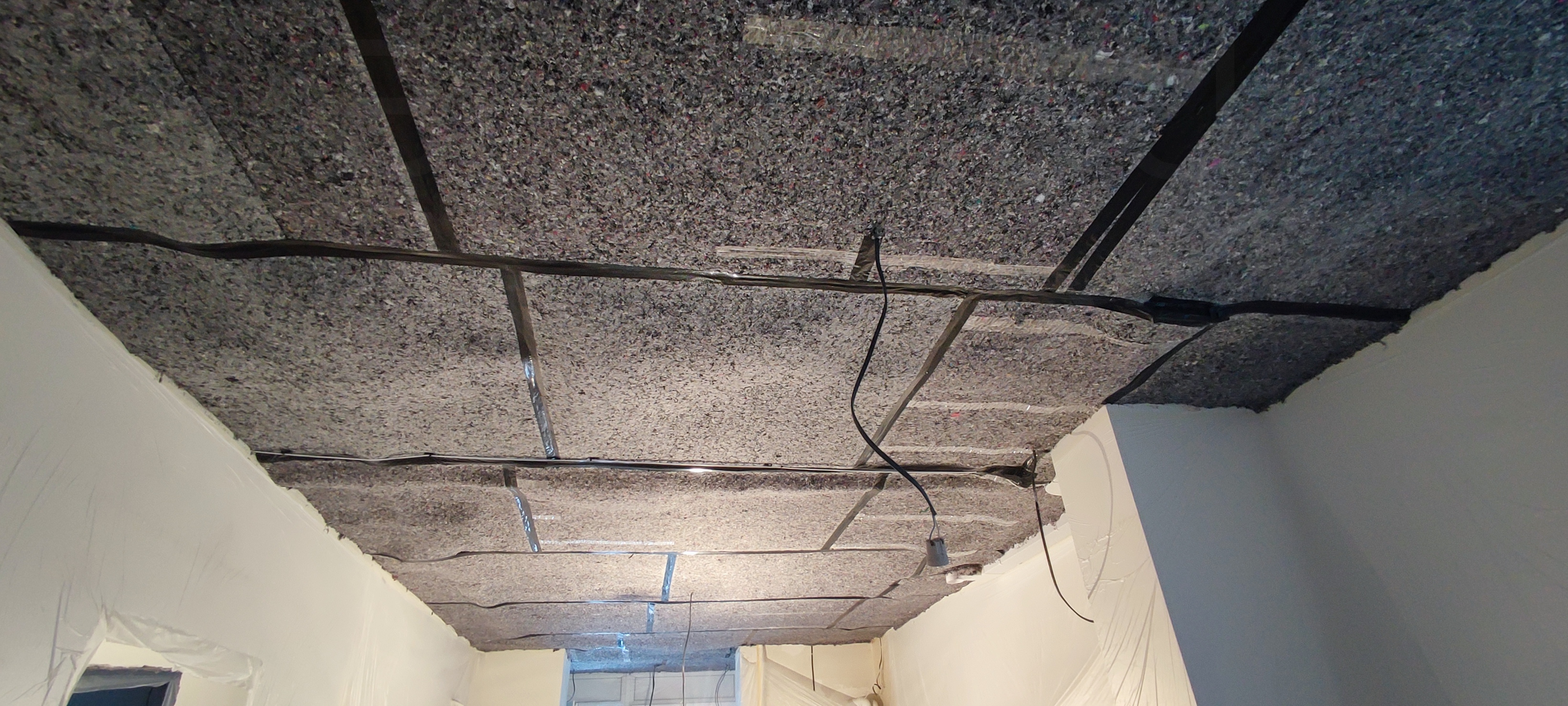 Мы сделали максимально усиленную систему звукоизоляции потолка именно в этой зоне: